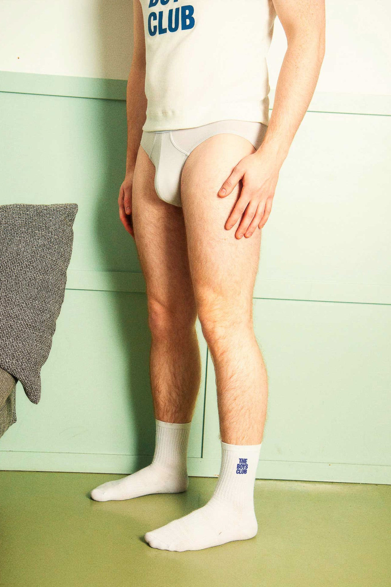 Diese gerippten Strümpfe im Sportswear-Design bestehen aus einer weißen, angenehmen weichen Baumwollmischung. Das kontrastierende blaue THE BOYS CLUB Logo wird als Stickerei direkt in Hamburg aufgebracht und unterstreicht deine Zugehörigkeit zur Community. Die bequemen Strümpfe runden jedes lässige Outfit stilvoll ab.